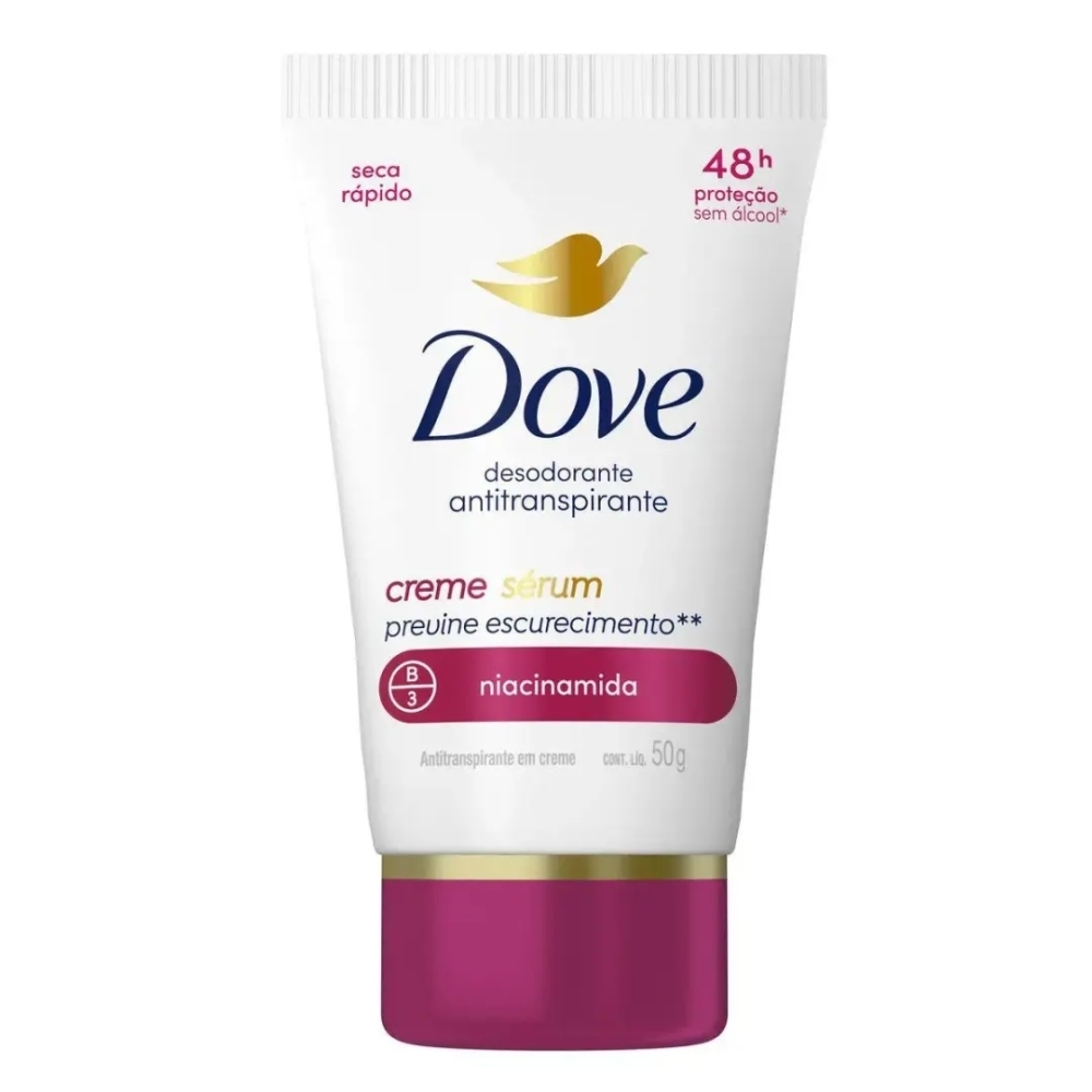 Descrição do produto O que é o Dove Previne Escurecimento 48h? Dove Previne Escurecimento 48h é um desodorante antitranspirante sérum creme com aplicador anatômico e desenvolvido com ¼ de creme hidratante + vitamina B3 e Niacinamida.