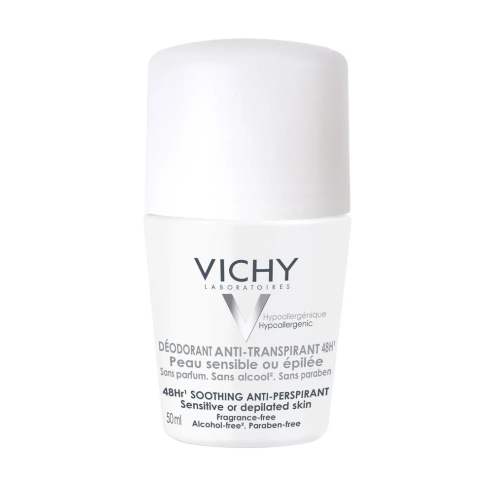 Como usar o Desodorante Antitranspirante Vichy Roll-On Peles Sensíveis com 50ml? -Use o desodorante diariamente após o banho. -Aplique a fórmula roll on na pele limpa, seca e não irritada.