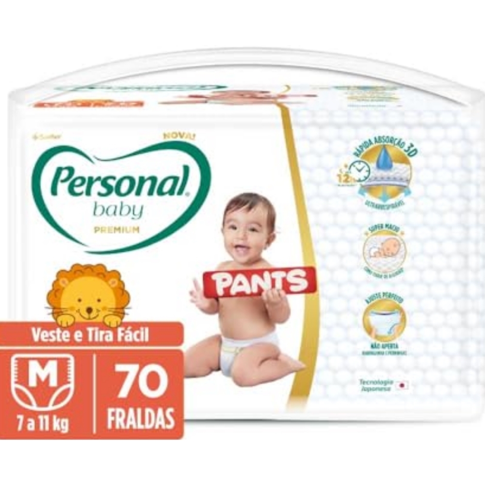Descrição do produto O que é e para que serve a Fralda Personal Baby Premium Pants? Desenvolvida com a mais alta Tecnologia Japonesa, que garante o máximo cuidado e conforto para os bebês brasileiros, a Fralda Personal Baby Premium Pants é um modelo super macio como toque de algodão, fácil de vestir e tirar e com ajuste perfeito que não aperta na barriguinha nem nas perninhas.