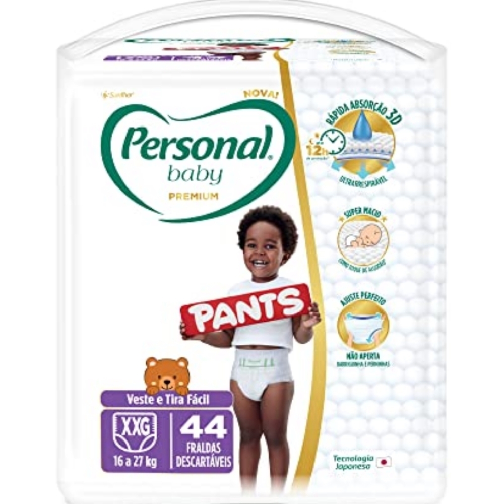 Descrição do produto O que é e para que serve a Fralda Personal Baby Premium Pants? Desenvolvida com a mais alta Tecnologia Japonesa, que garante o máximo cuidado e conforto para os bebês brasileiros, a Fralda Personal Baby Premium Pants é um modelo super macio como toque de algodão, fácil de vestir e tirar e com ajuste perfeito que não aperta na barriguinha nem nas perninhas.