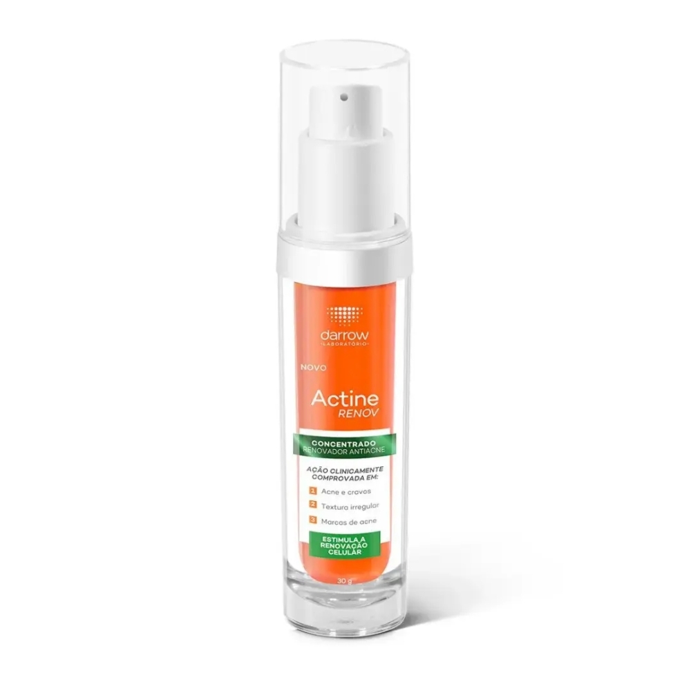 Descrição do produto O que é e para que serve o Renovador Antiacne Darrow Actine Renov Concentrado 30G? O Actine Renov é um concentrado renovador antiacne desenvolvido especificamente para peles oleosas e acneicas, com uma fórmula composta por 95% de ingredientes naturais. Possui uma combinação exclusiva de ativos dermoenergizantes como Ácido Succínico, Niacinamida, Extrato de Ginseng e P-refinyl, sendo um produto vegano e cruelty free.