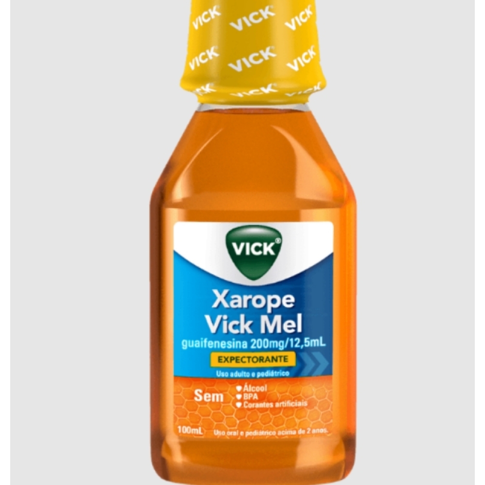 O Xarope Vick Mel é um expectorante eficaz indicado para o alívio da tosse produtiva com catarro, comum em gripes e resfriados. Sua fórmula contém guaifenesina 200 mg por 12,5 mL, que ajuda a fluidificar e eliminar o muco das vias respiratórias, facilitando a expulsão do catarro e proporcionando alívio rápido, em cerca de 15 minutos. Livre de álcool e corantes artificiais, é uma opção segura para adultos e crianças a partir de 2 anos, com dosagens ajustadas conforme a faixa etária. Recomenda-se a administração oral do xarope, com doses de 12,5 mL a cada 4 horas para adultos e crianças acima de 12 anos, respeitando o máximo de 4 doses diárias. Para crianças entre 2 e 12 anos, a dose deve ser proporcional e orientada por médico. É importante não exceder a dose recomendada e consultar um profissional de saúde se os sintomas persistirem por mais de 7 dias. O uso é contraindicado para pessoas com hipersensibilidade aos componentes da fórmula e deve ser feito com cautela em pacientes com doenças respiratórias crônicas.