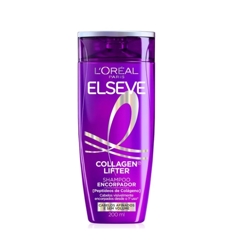 Descrição do produto O que é e para que serve o shampoo Encorpador Elseve colágeno Lifter 200Ml? O Shampoo Encorpador Elseve Colágeno Lifter é um produto capilar desenvolvido especificamente para cabelos finos e afinados, com o objetivo de proporcionar volume, densidade e espessura imediata aos fios. Sua fórmula exclusiva contém peptídeos de colágeno vegetais que mimetizam os peptídeos naturais do colágeno, permitindo a reconstrução da massa capilar e ampliação do volume desde as raízes até as pontas.