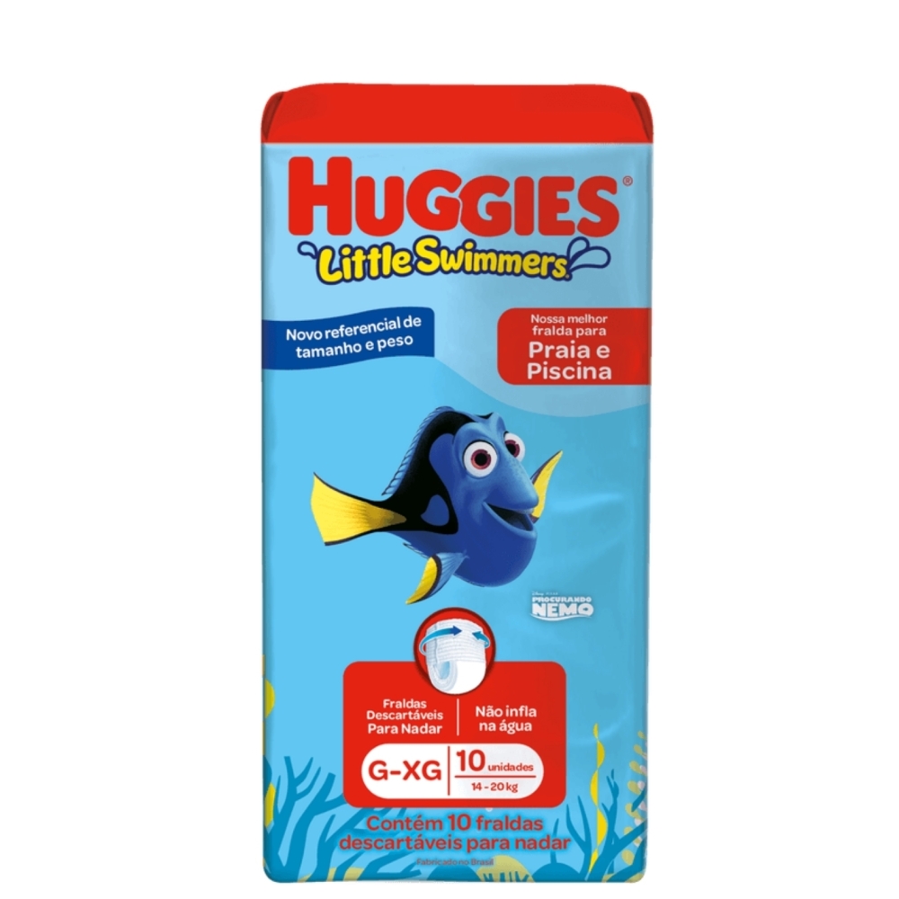 Benefícios e diferenciais -Fralda descartável para nadar. -A prova d’água -Criança protegida enquanto brinca no mar e na piscina. -Liberdade de movimento para o bebê ficar à vontade na água. -Ajuste perfeito ao corpo. Como usar Huggies Little Swimmers? Coloque a fralda passando pelas pernas do bebê, ajustando na barriga conforme necessário.
