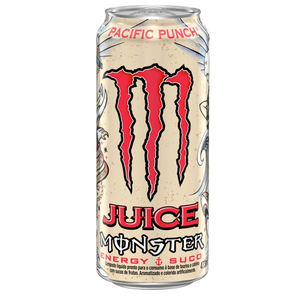 Descrição Energético Monster Juice Pacific Punch 473ml Composto Energético Líquido à Base de Taurina e Cafeína Juice Suco de Frutas Monster Pacific Punch Lata 473ml