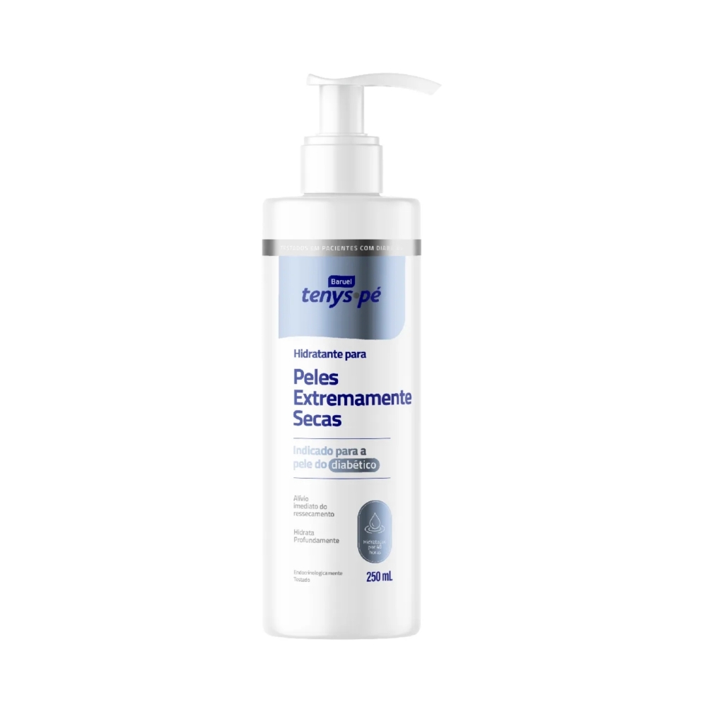 Descrição do produto: O que é e Para que serve O Regenerador para pele extremamente seca Tenys Pé Baruel é indicado para diabéticos. Traz uma sensação imediata de alívio do ressecamento extremo e hidrata por 48 horas, enquanto promove a regeneração do tecido da pele. Endocrinologicamente testado.