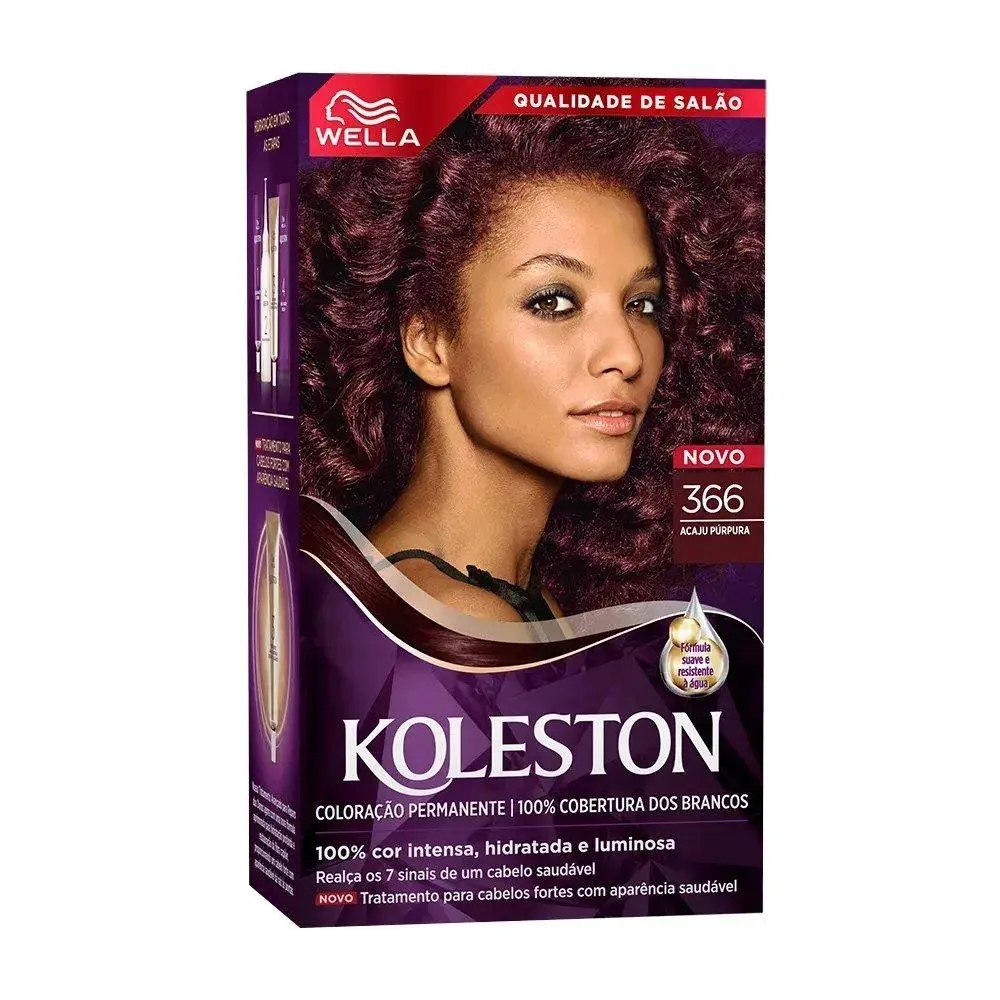 Descrição do produto O que é e para que serve a Tintura Creme Koleston Nº366 Acaju Púrpura 1 Unidade? A Tintura Creme Koleston é um produto capilar com fórmula exclusiva de Tratamento Gloss Intenso, que funciona como uma barreira de proteção nos cabelos, proporcionando mais brilho e maciez, além de manter a intensidade da cor. Serve para colorir os cabelos, cobrindo perfeitamente os fios brancos de forma rápida e fácil, com aplicação que dura apenas 20 minutos, podendo ser realizada em casa ou no salão de beleza.