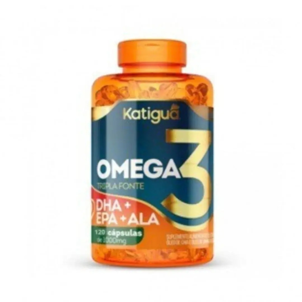 Suplemento Alimentar Ômega 3 Katiguá 120 cápsulas O Suplemento Alimentar Ômega 3 Katiguá 120 cápsulas é um suplemento alimentar que auxilia na pressão arterial e reduz inflamação, tem proteção cardiovascular e aumento do colesterol. Sua formula possui óleo de peixe que age nos ossos, articulações e na saúde do coração. Ideal para pessoas com riscos de derrame, infarto ou com problemas cardiovascular. Afina o sangue e não deixa o coagular, evita o acumulo de "gorduras ruins". Tem ação de proporcionar alto rendimento ao cérebro e memória, evitando esquecimentos e mente cansada. Rico em DHA, EPA, ALA.