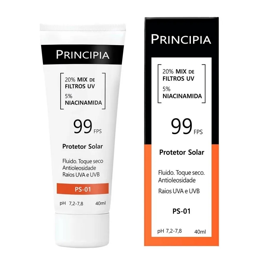 O Protetor Solar PS-01 da PRINCIPIA é um filtro solar fluido com toque seco, rápida absorção, ideal para todos os tipos de pele, inclusive as oleosas.