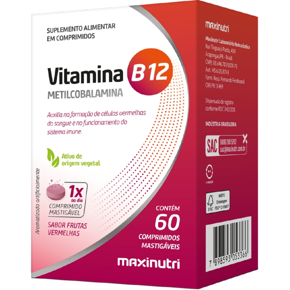 Descrição A vitamina B12 da Maxinutri de frutas vermelhas é um suplemento alimentar formulado para fornecer uma dose eficiente de vitamina B12, uma vitamina essencial que desempenha papéis fundamentais no organismo. Ela é especialmente indicada para pessoas que têm dificuldades na absorção dessa vitamina, como vegetarianos, veganos, idosos ou indivíduos com certas condições de saúde que podem levar à deficiência de B12.
