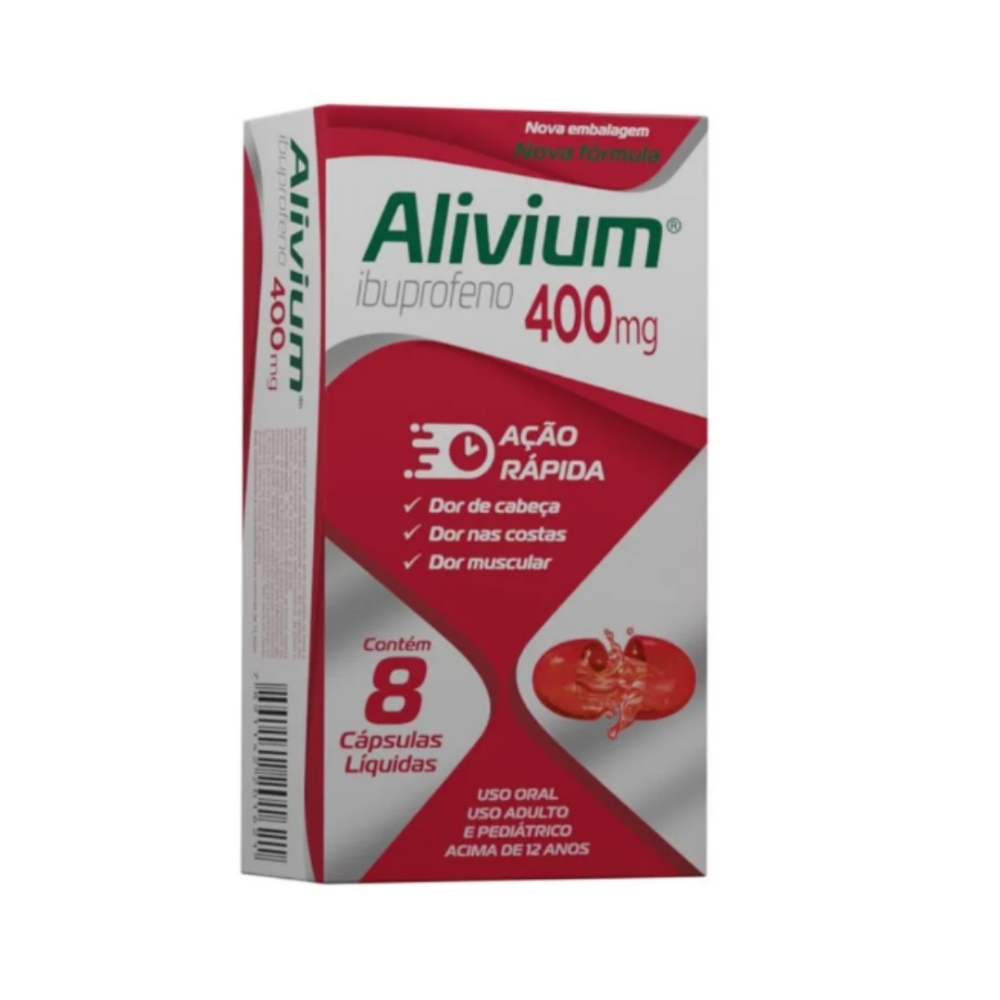 O Alivium 400mg é um medicamento com ibuprofeno em sua composição, um princípio ativo com potente ação analgésica, antitérmica e anti-inflamatória. Sua grande vantagem está na inovadora apresentação em cápsula mole, também conhecida como cápsula líquida. Essa tecnologia permite que o ibuprofeno, já dissolvido, seja absorvido mais rapidamente pelo organismo, proporcionando um início de ação mais rápido, que ocorre entre 10 a 30 minutos após a administração. Além disso, seu efeito é prolongado, garantindo alívio por até 8 horas, sendo uma excelente opção para o tratamento de dores e febre.