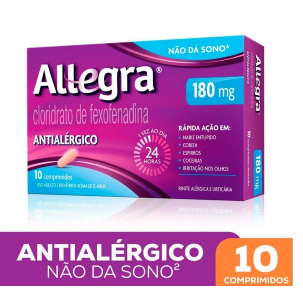 Antialérgico Allegra Cloridrato de Fexofenadina 180mg 10 Comprimidos É UM MEDICAMENTO.