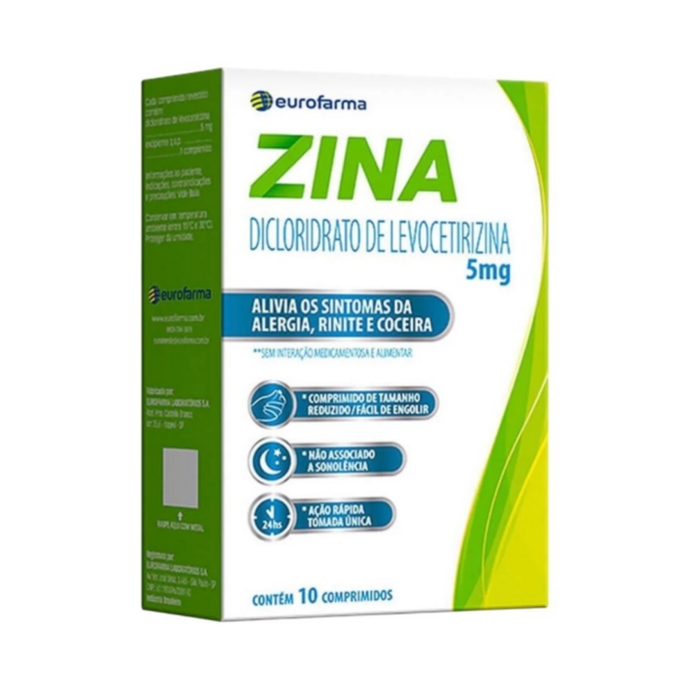 Zina Dicloridrato de Levocetirizina 5mg 10 Comprimidos É UM MEDICAMENTO.
