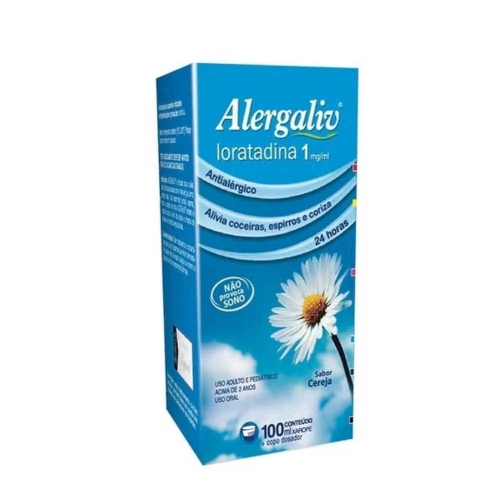 Alergaliv Loratadina 1mg/ml Xarope 100ml É UM MEDICAMENTO. SEU USO PODE TRAZER RISCOS. PROCURE O MÉDICO E O FARMACÊUTICO. LEIA A BULA. SE PERSISTIREM OS SINTOMAS, O MÉDICO DEVERÁ SER CONSULTADO.