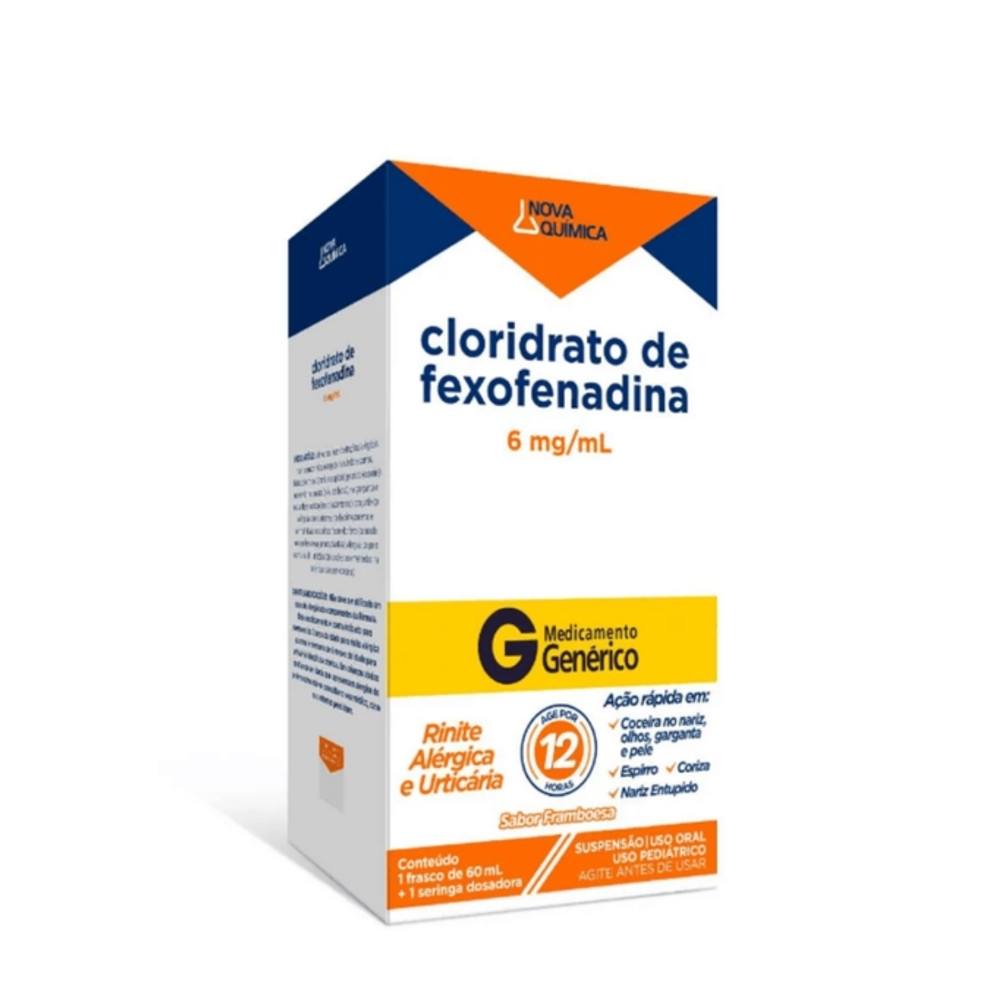 Clor fexofenadina 6mg/ml 60ml g.novaquimica É UM MEDICAMENTO. SEU USO PODE TRAZER RISCOS. PROCURE O MÉDICO E O FARMACÊUTICO. LEIA A BULA. SE PERSISTIREM OS SINTOMAS, O MÉDICO DEVERÁ SER CONSULTADO.