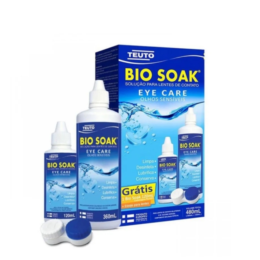 Para que serve o Kit Bio Soak Solução para Lentes de Contato com 480ml e 1 estojo grátis? Solução Bio Soak A Bio Soak é uma solução multiação desenvolvida para higienizar lentes de contato gelatinosas, inclusive as de silicone hidrogel. Sua fórmula biodegradável contém agentes de limpeza que desinfetam e eliminam proteínas das lentes. Ainda, promove ação clareadora, lubrificante e auxilia na sua conservação.