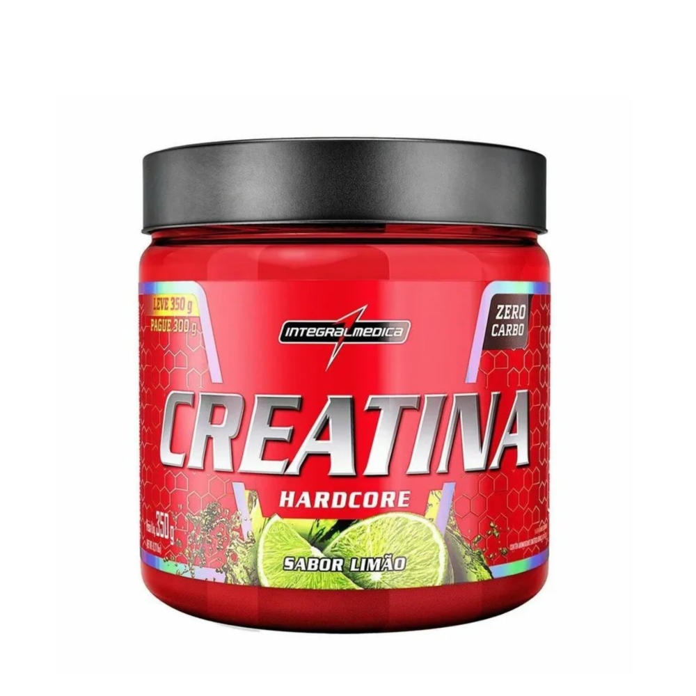 Creatina Hardcore Integralmedica sabor limão 350g é indicada para quem busca ganho de força, desempenho e recuperação muscular.