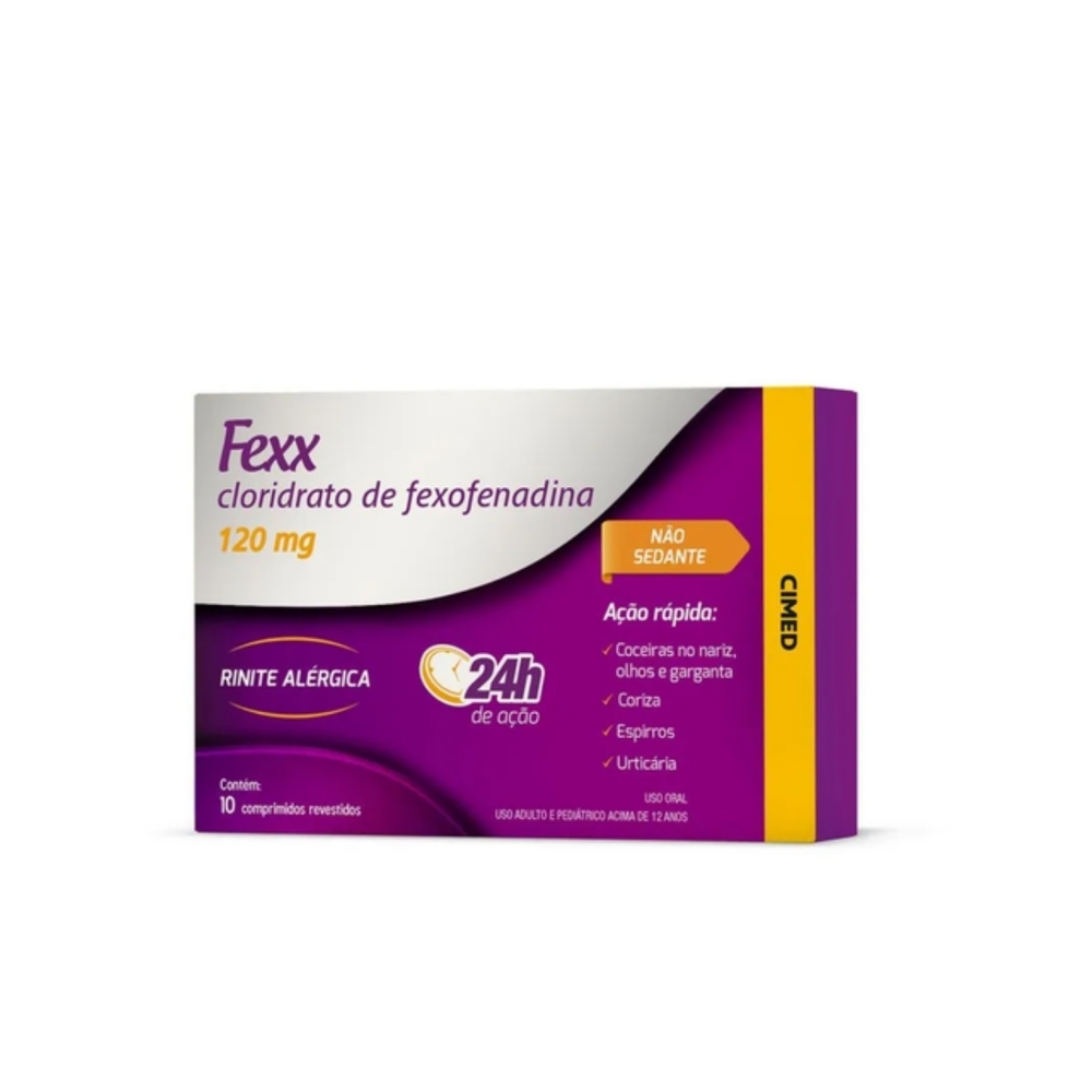 Antialérgico Fexx Cloridrato de Fexofenadina 120mg 10 Comprimidos É UM MEDICAMENTO. SEU USO PODE TRAZER RISCOS. PROCURE O MÉDICO E O FARMACÊUTICO. LEIA A BULA. SE PERSISTIREM OS SINTOMAS, O MÉDICO DEVERÁ SER CONSULTADO.