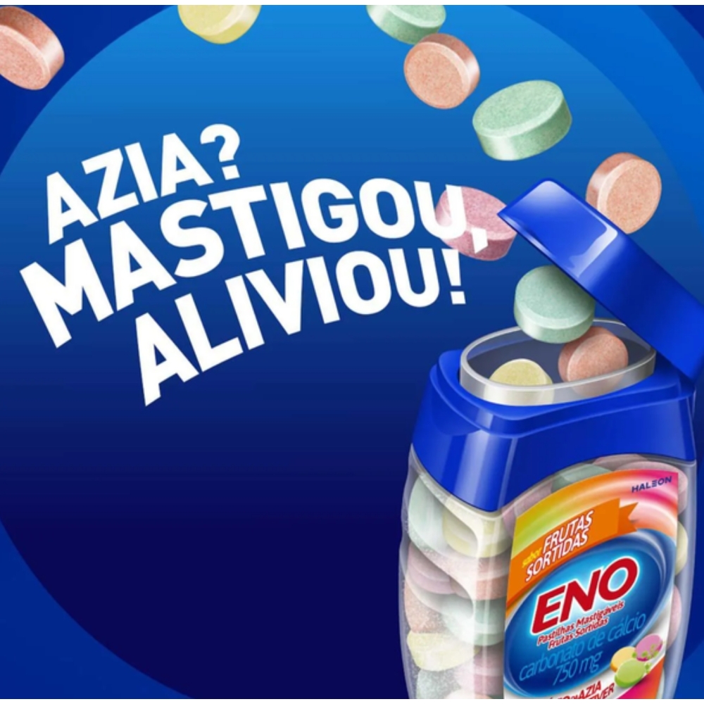 Antiácido Eno Frutas Sortidas 48 pastilhas Mastigáveis É UM MEDICAMENTO. SEU USO PODE TRAZER RISCOS. PROCURE O MÉDICO E O FARMACÊUTICO. LEIA A BULA. SE PERSISTIREM OS SINTOMAS, O MÉDICO DEVERÁ SER CONSULTADO.