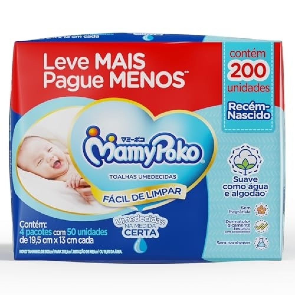 Descrição do produto Toalhas umedecidas mamypoko recém-nascido - 200 unidades - suave como água e algodão*, as toalhas umedecidas mamypoko são ideais para a higiene diária do seu bebê recém-nascido. Não contém álcool etílico e dermatologicamente testado. *não contém fibras de algodão.