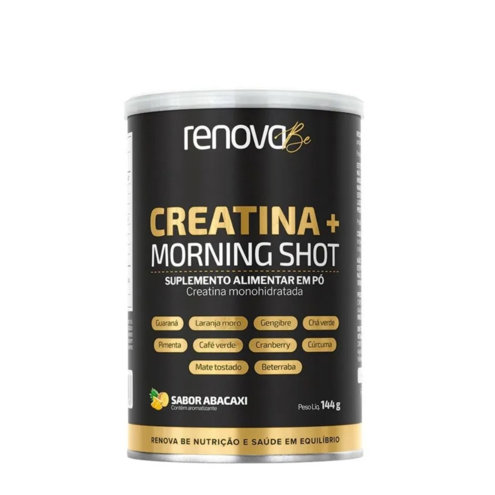 A creatina + morning shot da renova be combina desempenho e vitalidade em um único produto! A creatina promove o aumento de força e ganho de massa muscular, enquanto o morning shot, com ingredientes como cúrcuma, gengibre, pimenta e vitamina c, fortalece o sistema imunológico.