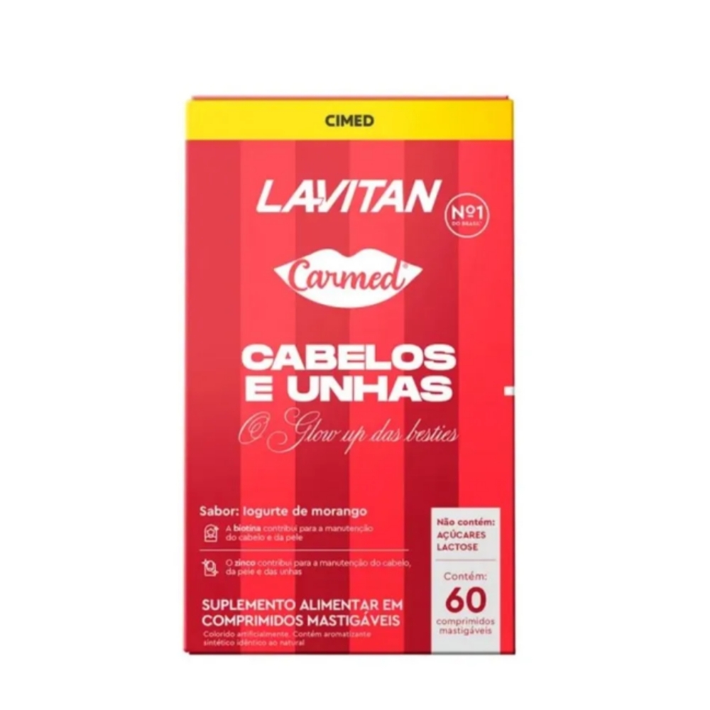 Descrição do produto O que é e para que serve o Lavitan Carmed Cabelos e Unhas? O Lavitan Carmed Cabelos e Unhas é um suplemento alimentar em comprimidos mastigáveis, formulado com vitaminas e minerais que contribuem para a saúde, força e crescimento dos cabelos e unhas. Sua combinação de Biotina, Zinco, Selênio e Vitaminas C, D e E auxilia na manutenção da beleza dos fios e unhas, além de reforçar a imunidade e combater o envelhecimento precoce das células.