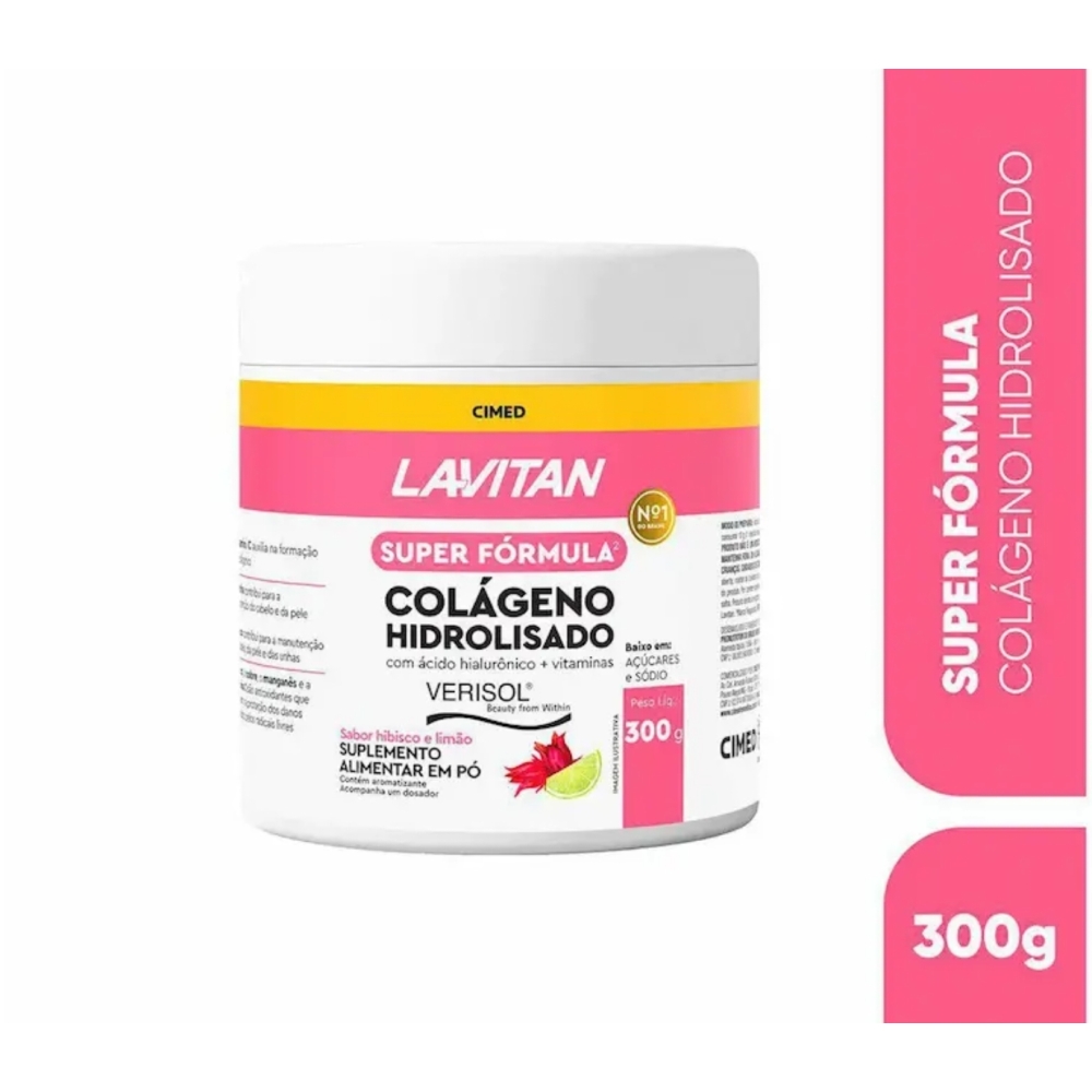 Descrição do produto O que é e para que serve o Lavitan Super Fórmula Verisol colágeno Hidrolisado + Ácido Hialurônico Sabor Hibisco E Limão 300G? O Lavitan Super Fórmula é um suplemento alimentar em pó sabor hibisco e limão, formulado com ácido hialurônico, vitamina c, biotina, zinco e um mix de vitaminas e minerais. Seu objetivo principal é contribuir para a manutenção da saúde dos cabelos, pele e unhas, auxiliando na formação do colágeno, sendo um produto baixo em açúcares e sódio.