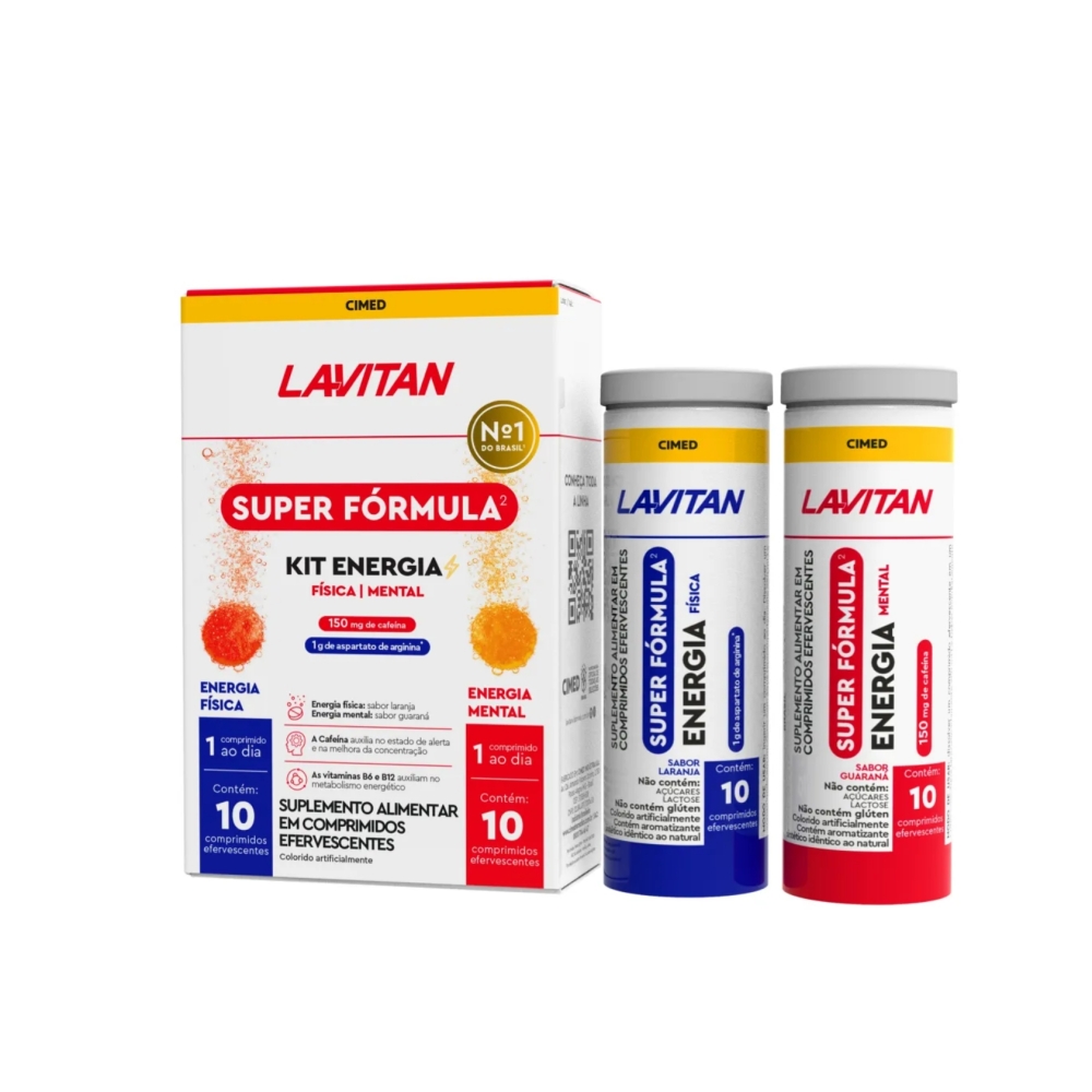 Suplemento alimentar em comprimidos efervescentes. Auxilia no aumento do estado de alerta e na melhora da concentração. Ajuda no metabolismo energético. Energia física: 1g de aspartato de arginina, sabor laranja. Energia mental: 150g de cafeína, sabor tradicional de guaraná.