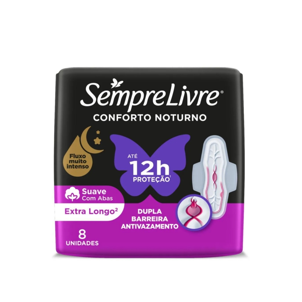 Descrição do produto O que é o Sempre Livre Conforto Noturno Cobertura Suave Com Abas? Com o dobro de cápsulas de gel superabsorventes, Sempre Livre Conforto Noturno tem um formato ideal que se ajusta ao corpo, além de acompanhar os movimentos, oferecendo 100% de proteção. Contém abas para melhor segurança e sua cobertura é suave, sendo mais confortável no contato com a pele.